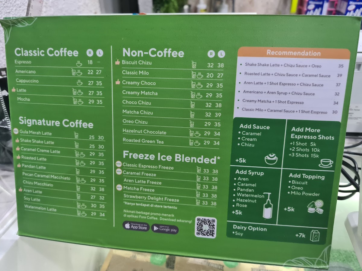 Step into the cozy and inviting atmosphere of Fore Coffee - Margonda Raya Depok Menu, where every sip is an experience. Located in the heart of Pondok Cina, Depok, this charming café offers a wide array of coffee options, each crafted to perfection. Whether you're in the mood for a smooth espresso, a rich cappuccino, or a refreshing iced brew, you'll find something to suit your taste. The menu features not only classic coffee selections but also creative blends and signature drinks that are sure to delight.